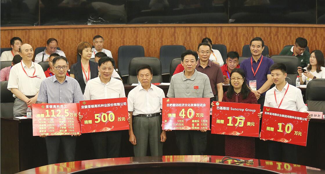 善人者,人亦敬之。張海銀種業(yè)基金會五年來的公益慈善活動得到社會各界愛心人士和愛心單位600余次的的慷慨捐贈,累計(jì)950多萬元。會上還進(jìn)行了基金會2018年公益愛心捐贈儀式。荃銀高科母子公司高管和員工多次參與基金會濟(jì)困助學(xué)公益慈善活動,本次捐贈112.5萬元;吉林鴻翔種業(yè)集團(tuán)鴻翔種業(yè)有限公司捐贈10萬元;巴基斯坦Suncrop Group(陽光作物集團(tuán))捐贈1萬美元;合肥霍邱經(jīng)濟(jì)文化發(fā)展促進(jìn)會及會員為基金會貧困助學(xué)項(xiàng)目捐贈40萬元;安徽荃銀高科種業(yè)股份有限公司捐贈500萬元。基金會將按捐贈人捐贈的意愿和在業(yè)務(wù)范圍內(nèi)開展公益項(xiàng)目和慈善活動。