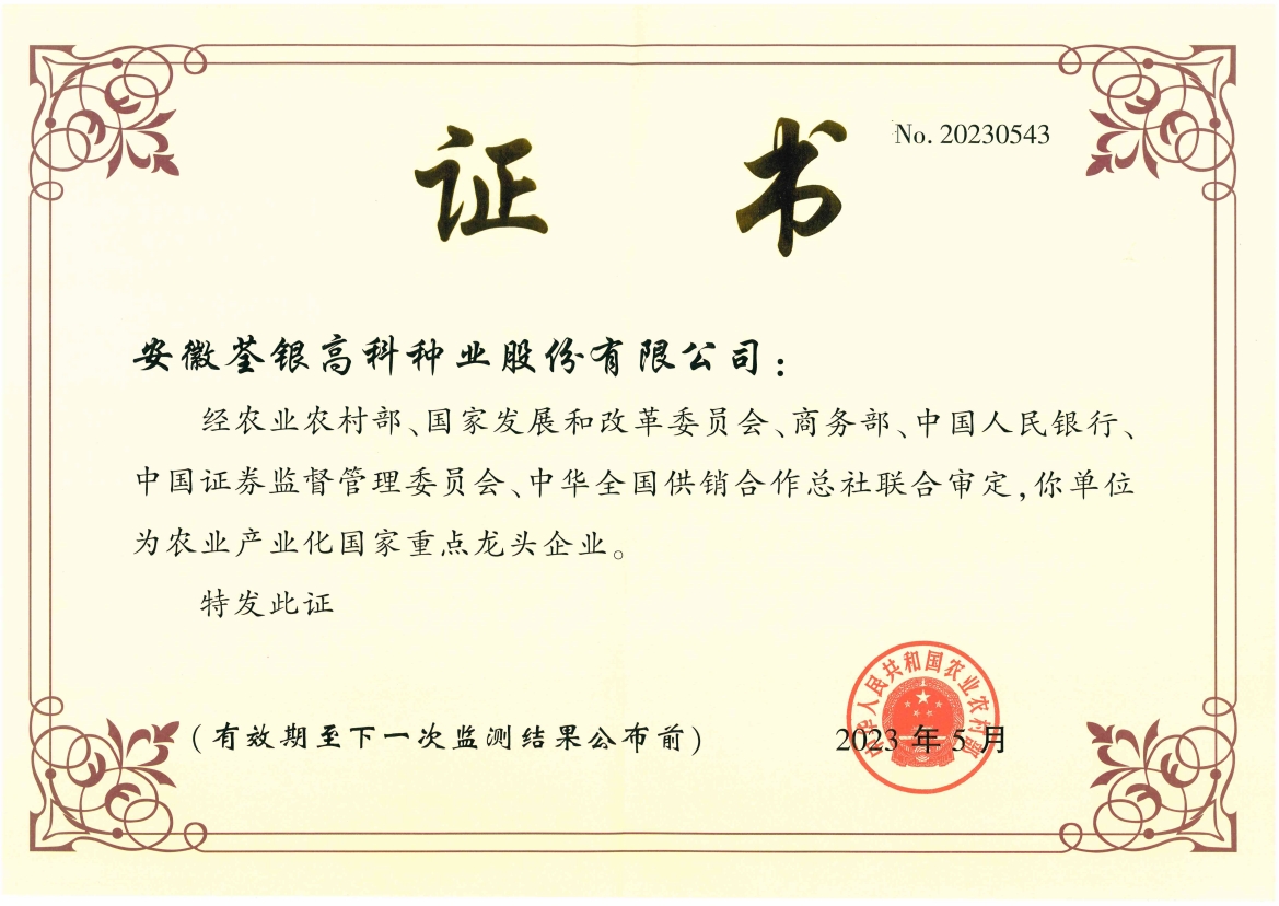 2025年07月安徽荃銀高科種業(yè)股份有限公司是一家“以種業(yè)為核心、農(nóng)業(yè)服務(wù)為延伸、探索和創(chuàng)新農(nóng)業(yè)多元化發(fā)展”的現(xiàn)代高科技種業(yè)上市公司,證券代碼:300087。公司注冊資金9.47億元,系“中國種業(yè)領(lǐng)軍企業(yè)、農(nóng)業(yè)產(chǎn)業(yè)化國家重點龍頭企業(yè)、國家高新技術(shù)企業(yè)、農(nóng)業(yè)部首批農(nóng)作物種子育繁推一體化企業(yè)、中國種業(yè)信用明星企業(yè)"。在國內(nèi)控股子公司20多家,在國外設(shè)立分支機構(gòu)4家,良種銷售至全國20多個省(市、區(qū)),出口覆蓋20多個國家與地區(qū),種業(yè)綜合實力、雜交水稻研發(fā)、推廣及海外業(yè)務(wù)規(guī)模均居全國種子企業(yè)前2位。